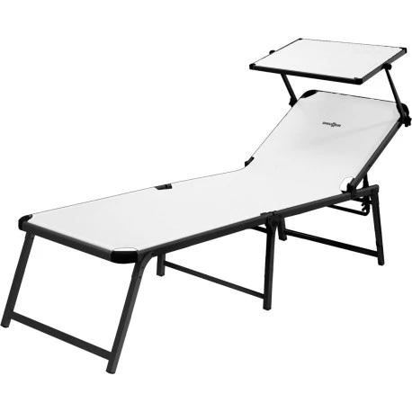 Lettino da sole confortevole con struttura stabile e pieghevole a tre gambe in alluminio anodizzato.
