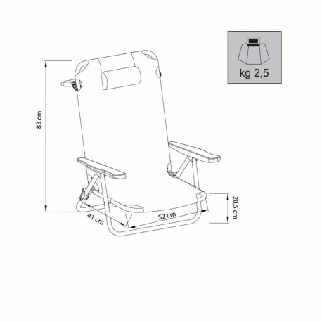 Spiaggina compatta con telaio leggerissimo e pieghevole in alluminio.
